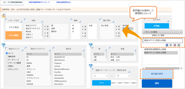 よく使う条件や選択項目は保存できるため、業務の度に選択する必要はありません。