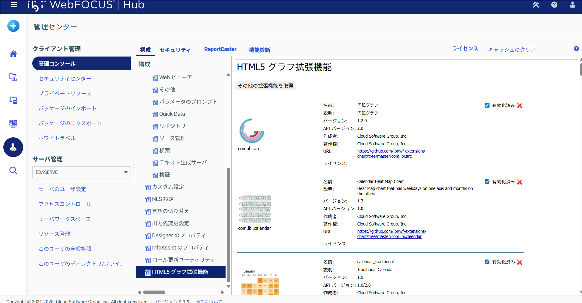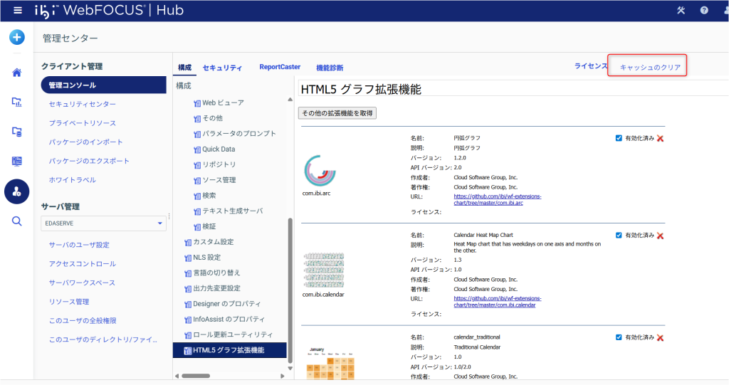 1.[管理センター]-[管理コンソール] – [アプリケーションの設定] – [HTML5グラフ拡張機能] を選択